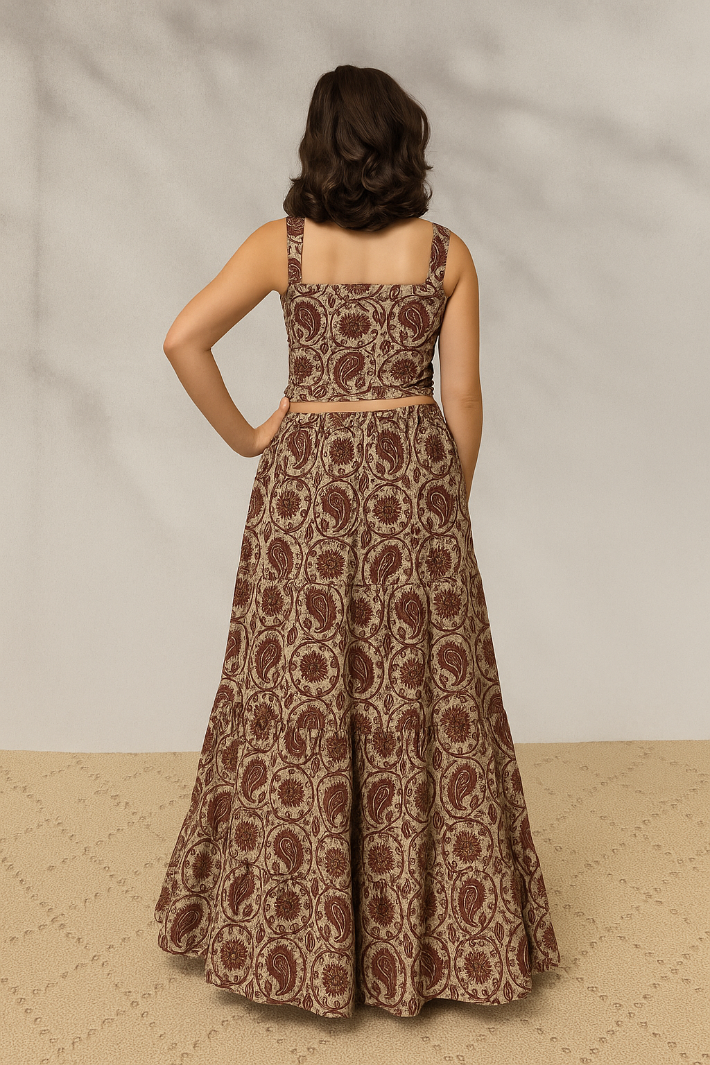 Make a bold statement on your next lunch or day date with this daring top and skirt set. Designed to turn heads, it blends edgy style with confident sophistication. The striking silhouette and unique details ensure you stand out effortlessly while embracing your fearless fashion sense. Perfect for those who want to express boldness and elegance in one unforgettable look.